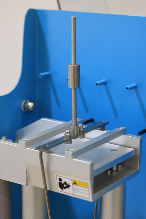 (7)升起试样放置台夹紧测试样板,将摆杆拨到相应起始位置并定位。